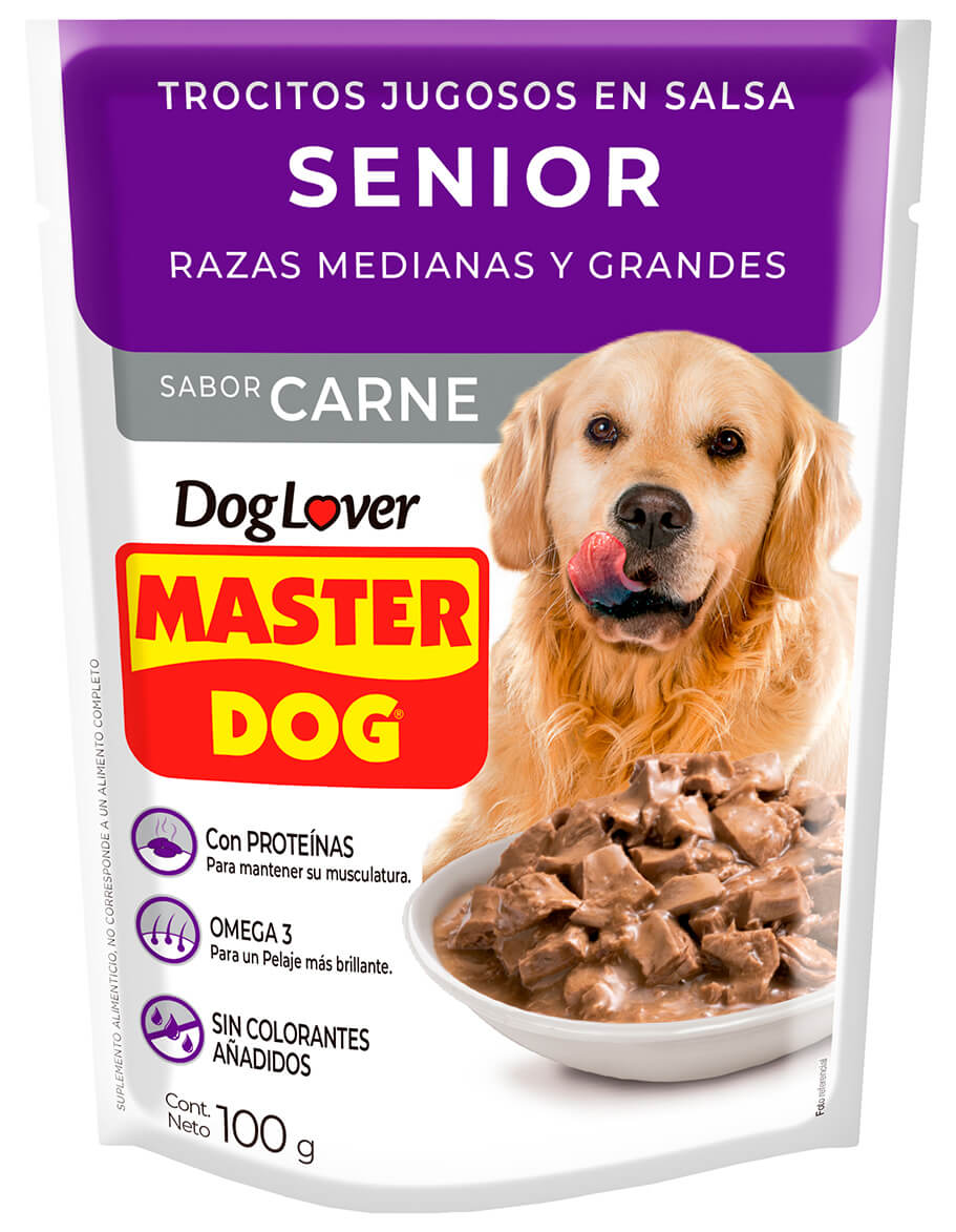 Master Dog contiene prebióticos para cada etapa de su vida, estos son sustancias inertes, que actúan como alimento para toda la flora intestinal benéfica del organismo de tu Master Dog y lo mantienen activo frente algún agente patógeno, listo para defenderlo.